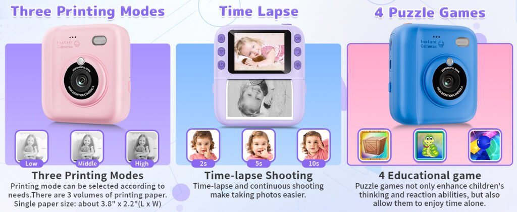 1-【Their 1st Real Camera – Fun All-in-One!】 Instant prints, big screen, 1080P video, zoom, games, music & more. The perfect creative sidekick for adventures—making every day special for your child and family.